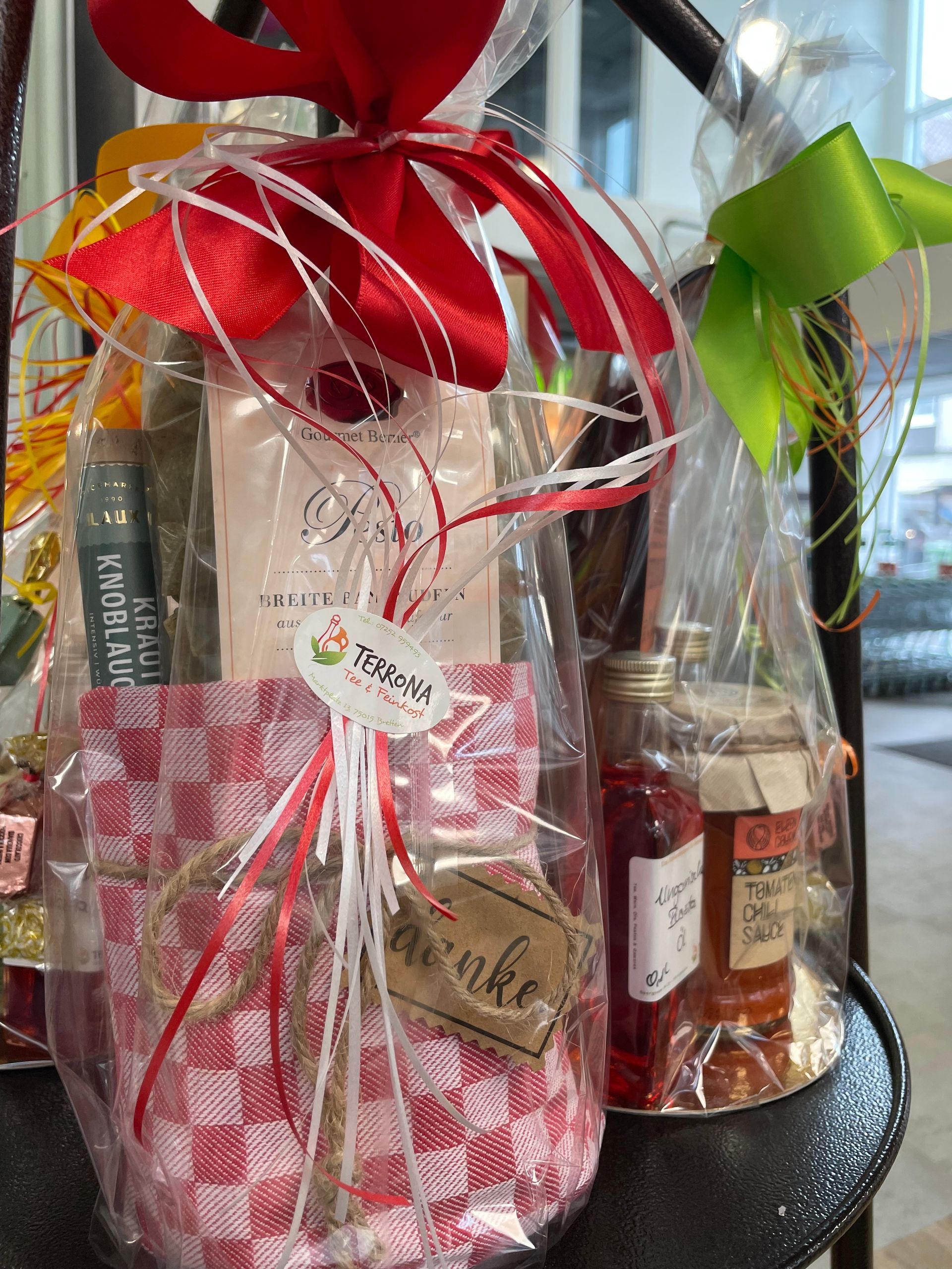 Gerne stellen wir für Sie Präsentkorbe mit Produkten zusammen, die Sie selbst oder in Zusammenarbeit mit uns auswählen können. Wir beraten Sie gerne.